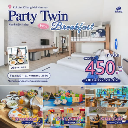 ห้องพักพร้อมอาหารเช้า สำหรับ 4 ท่านในราคาพิเศษเพียงคืนละ 1,800.-
