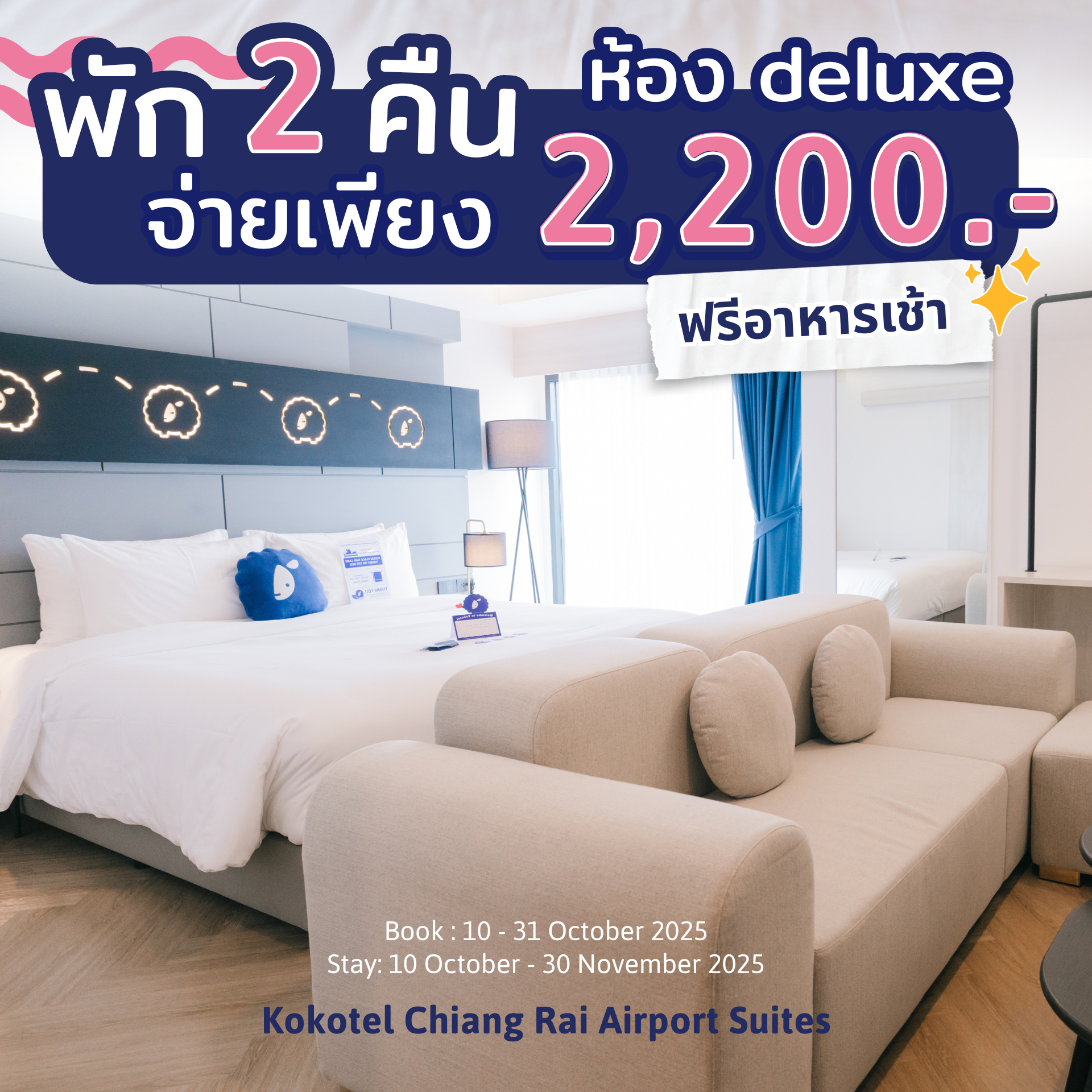 Stay 2 Nights in Koko Couple Deluxe or Koko Mate Deluxe for THB 2,200 net with Breakfast Included.
