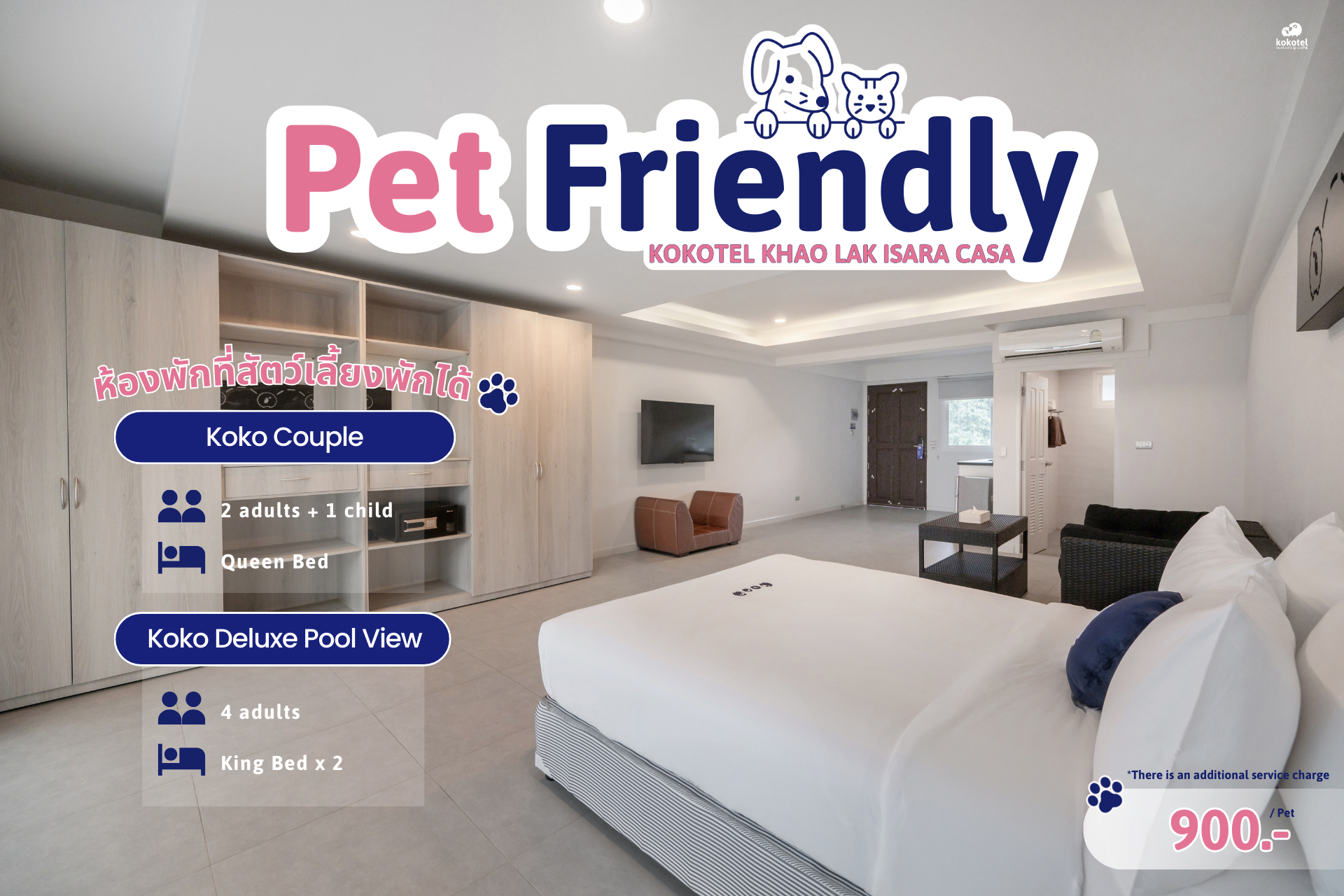 * Additional service charge 900 THB/ Pet