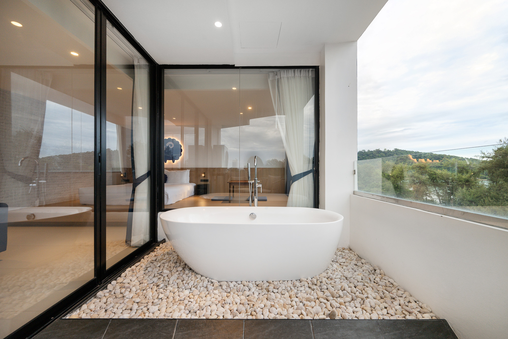 Koko Suite Ocean View offers 56 sq.m. of space with a plush King bed, refreshing ocean views, and a private outdoor bathtub, perfect for guests looking to elevate their beach vacation with a unique and relaxing touch.